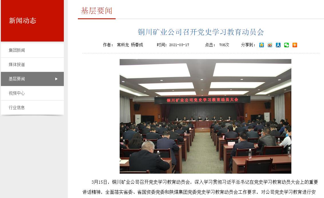 3月15日,銅川礦業(yè)公司召開黨史學(xué)習(xí)教育動員會,深入學(xué)習(xí)貫徹習(xí)近平總書記在黨史學(xué)習(xí)教育動員大會上的重要講話精神,全面落實省委、省國資委黨委和陜煤集團黨委黨史學(xué)習(xí)教育動員會工作要求,對公司黨史學(xué)習(xí)教育進行安排部署。