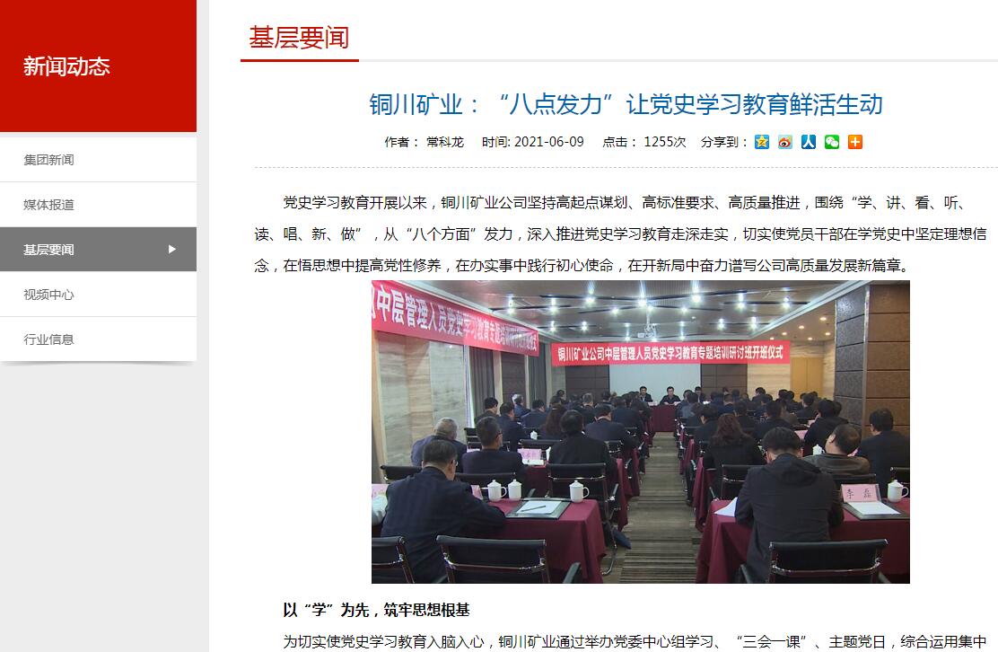 黨史學(xué)習(xí)教育開展以來,銅川礦業(yè)公司堅持高起點謀劃、高標(biāo)準(zhǔn)要求、高質(zhì)量推進(jìn),圍繞“學(xué)、講、看、聽、讀、唱、新、做”,從“八個方面”發(fā)力,深入推進(jìn)黨史學(xué)習(xí)教育走深走實,切實使黨員干部在學(xué)黨史中堅定理想信念,在悟思想中提高黨性修養(yǎng),在辦實事中踐行初心使命,在開新局中奮力譜寫公司高質(zhì)量發(fā)展新篇章。