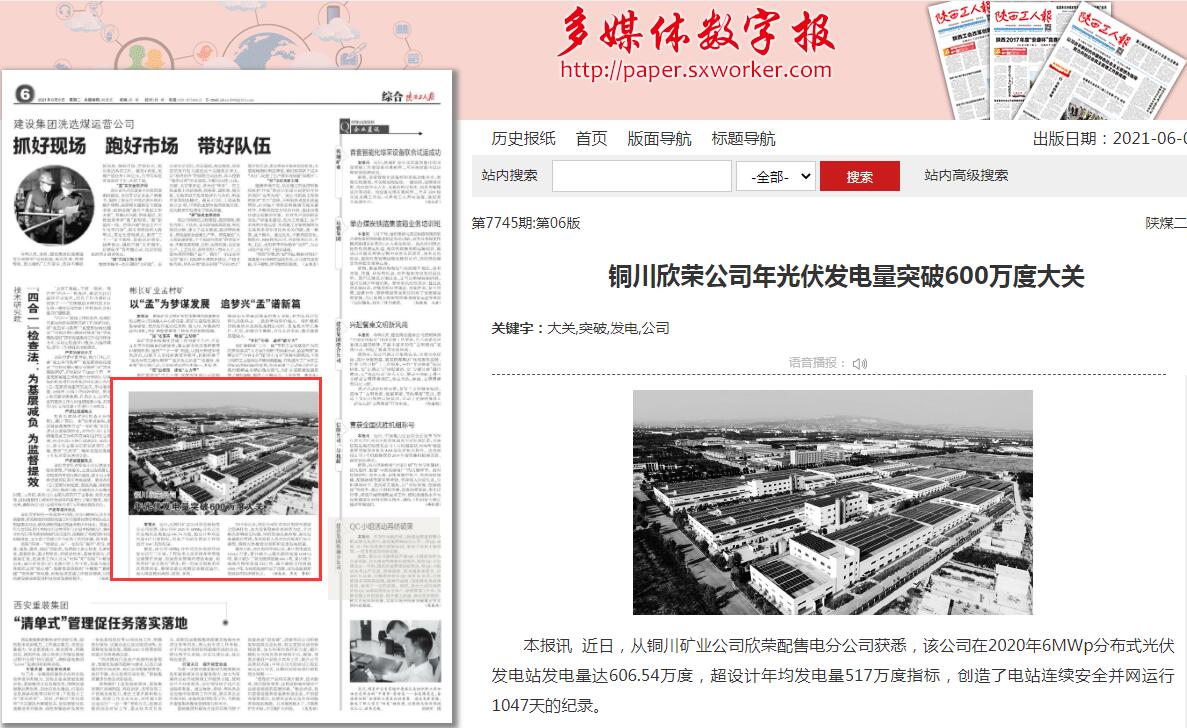 銅川欣榮公司年光伏發(fā)電量突破600萬度大關(guān)