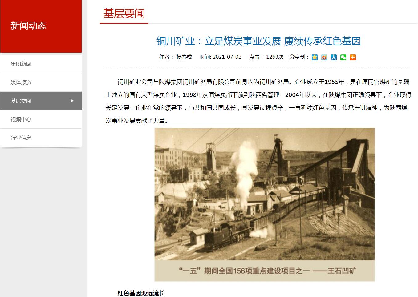 銅川礦業(yè)公司與陜煤集團銅川礦務(wù)局有限公司前身均為銅川礦務(wù)局。企業(yè)成立于1955年,是在原同官煤礦的基礎(chǔ)上建立的國有大型煤炭企業(yè),1998年從原煤炭部下放到陜西省管理,2004年以來,在陜煤集團正確領(lǐng)導(dǎo)下,企業(yè)取得長足發(fā)展。企業(yè)在黨的領(lǐng)導(dǎo)下,與共和國共同成長,其發(fā)展過程艱辛,一直延續(xù)紅色基因,傳承奮進精神,為陜西煤炭事業(yè)發(fā)展貢獻了力量。