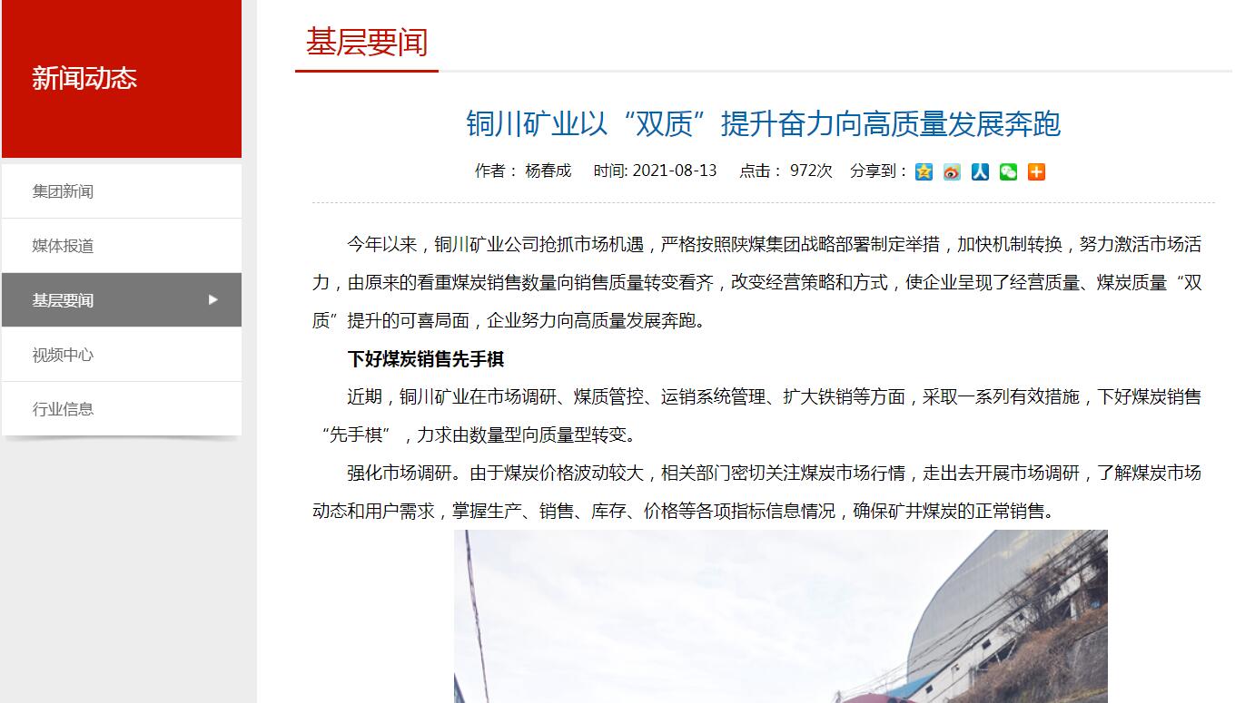 今年以來,銅川礦業(yè)公司搶抓市場(chǎng)機(jī)遇,嚴(yán)格按照陜煤集團(tuán)戰(zhàn)略部署制定舉措,加快機(jī)制轉(zhuǎn)換,努力激活市場(chǎng)活力,由原來的看重煤炭銷售數(shù)量向銷售質(zhì)量轉(zhuǎn)變看齊,改變經(jīng)營(yíng)策略和方式,使企業(yè)呈現(xiàn)了經(jīng)營(yíng)質(zhì)量、煤炭質(zhì)量“雙質(zhì)”提升的可喜局面,企業(yè)努力向高質(zhì)量發(fā)展奔跑。