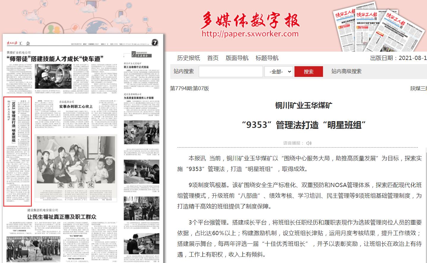 銅川礦業(yè)玉華煤礦“9353”管理法打造“明星班組”