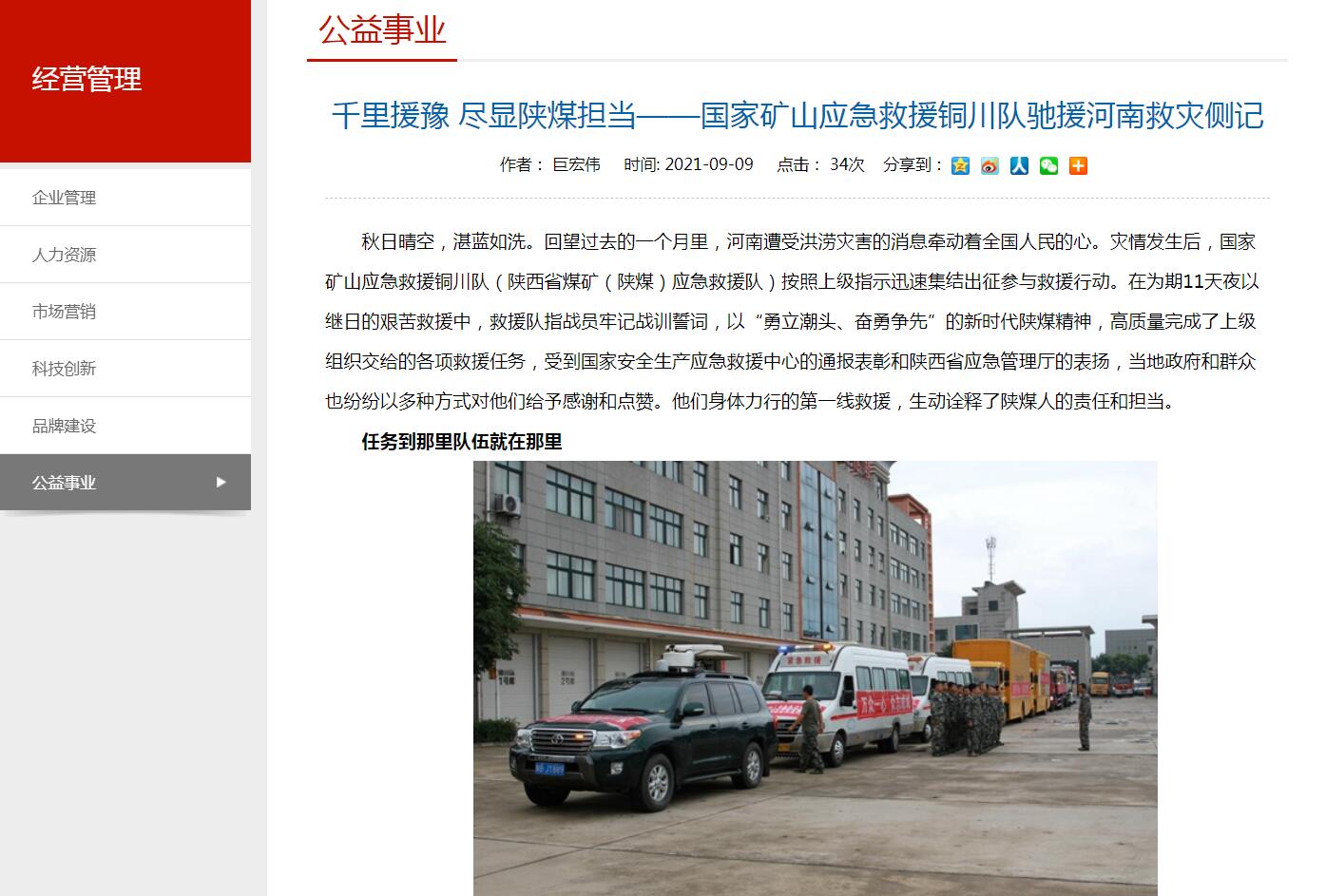 秋日晴空,湛藍(lán)如洗?;赝^(guò)去的一個(gè)月里,河南遭受洪澇災(zāi)害的消息牽動(dòng)著全國(guó)人民的心。災(zāi)情發(fā)生后,國(guó)家礦山應(yīng)急救援銅川隊(duì)(陜西省煤礦(陜煤)應(yīng)急救援隊(duì))按照上級(jí)指示迅速集結(jié)出征參與救援行動(dòng)。在為期11天夜以繼日的艱苦救援中,救援隊(duì)指戰(zhàn)員牢記戰(zhàn)訓(xùn)誓詞,以“勇立潮頭、奮勇?tīng)?zhēng)先”的新時(shí)代陜煤精神,高質(zhì)量完成了上級(jí)組織交給的各項(xiàng)救援任務(wù),受到國(guó)家安全生產(chǎn)應(yīng)急救援中心的通報(bào)表彰和陜西省應(yīng)急管理廳的表?yè)P(yáng),當(dāng)?shù)卣腿罕娨布娂娨远喾N方式對(duì)他們給予感謝和點(diǎn)贊。他們身體力行的第一線救援,生動(dòng)詮釋了陜煤人的責(zé)任和擔(dān)當(dāng)。
