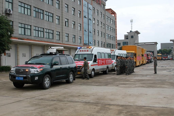 經(jīng)過(guò)一天緊張備戰(zhàn),所有救災(zāi)設(shè)備、生活物資以及36人組成的救援隊(duì)集結(jié)完畢,整裝待發(fā)。