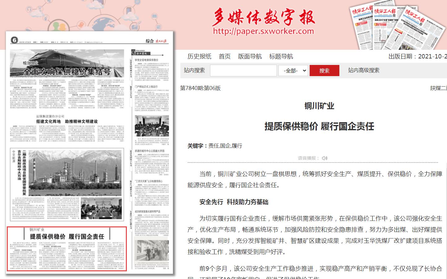 當(dāng)前,銅川礦業(yè)公司樹立一盤棋思想,統(tǒng)籌抓好安全生產(chǎn)、煤質(zhì)提升、保供穩(wěn)價,全力保障能源供應(yīng)安全,履行國企社會責(zé)任。