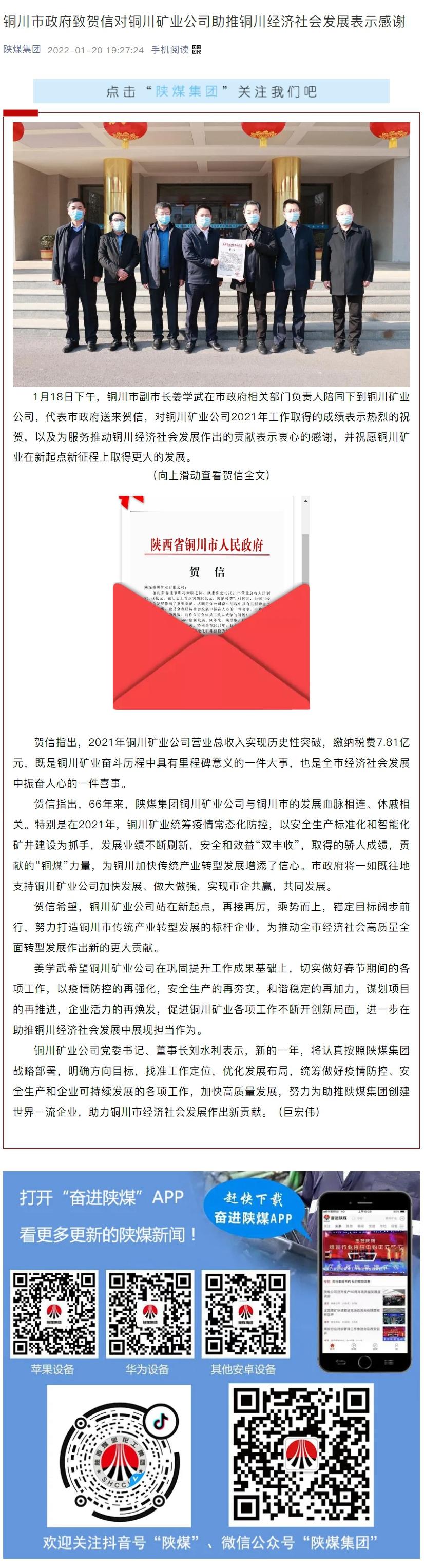上一條:集團(tuán)網(wǎng)| ?銅川礦業(yè): 黨員沖鋒陷陣 扛起防疫大旗 下一條:集團(tuán)網(wǎng)| 銅川市政府致賀信對(duì)銅川礦業(yè)公司助推地方經(jīng)濟(jì)社會(huì)發(fā)展表示感謝