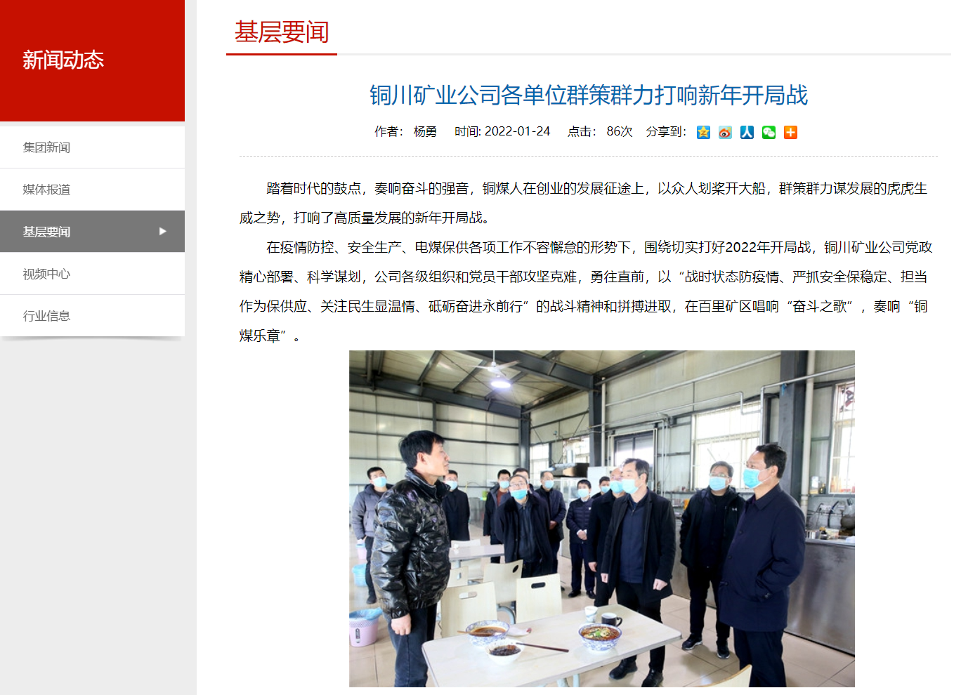 在疫情防控、安全生產(chǎn)、電煤保供各項(xiàng)工作不容懈怠的形勢(shì)下,圍繞切實(shí)打好2022年開局戰(zhàn),銅川礦業(yè)公司黨政精心部署、科學(xué)謀劃,公司各級(jí)組織和黨員干部攻堅(jiān)克難,勇往直前,以“戰(zhàn)時(shí)狀態(tài)防疫情、嚴(yán)抓安全保穩(wěn)定、擔(dān)當(dāng)作為保供應(yīng)、關(guān)注民生顯溫情、砥礪奮進(jìn)永前行”的戰(zhàn)斗精神和拼搏進(jìn)取,在百里礦區(qū)唱響“奮斗之歌”,奏響“銅煤樂(lè)章”。
