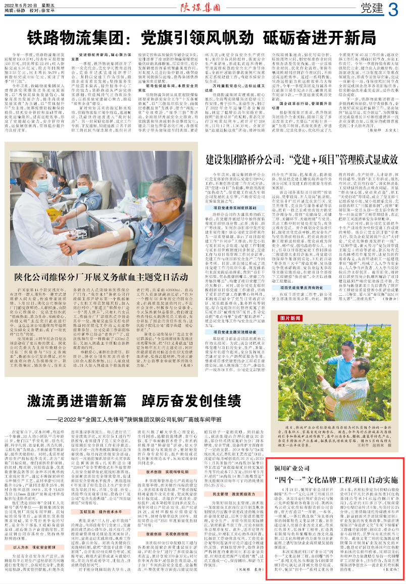 4月24日,銅川礦業(yè)公司召開銅煤“四個一”文化品牌工程項(xiàng)目啟動會。該項(xiàng)目是銅川礦業(yè)公司與銅川先聲傳媒商務(wù)有限公司、陜西鳳鳴云端文化傳媒有限責(zé)任公司合作,著力打造以“一首歌、一本書、一座城、一條紅色血脈”為主要內(nèi)容的銅煤特色文化品牌工程,旨在通過深入挖掘企業(yè)歷史文化,傳承紅色基因,弘揚(yáng)礦工精神,打造具有陜煤特色和銅煤特點(diǎn)的文化品牌,以文化和精神的力量奮力在新征程上譜寫加快企業(yè)高質(zhì)量發(fā)展的新篇章。