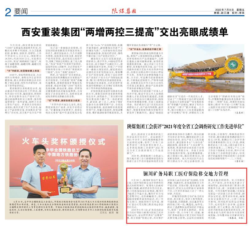 經(jīng)銅川市醫(yī)保局與礦務(wù)局密切聯(lián)系、相互配合,在職工參保繳費(fèi)、待遇政策、結(jié)算報(bào)銷、經(jīng)辦服務(wù)等方面實(shí)現(xiàn)了統(tǒng)一化、規(guī)范化、標(biāo)準(zhǔn)化,保證了過渡期間醫(yī)療保險(xiǎn)的平穩(wěn)運(yùn)行,保障了企業(yè)職工的利益。經(jīng)雙方協(xié)商一致,自今年7月1日起,銅川礦務(wù)局有限公司職工醫(yī)療保險(xiǎn)正式移交地方管理,這是響應(yīng)國(guó)家政策要求的有利舉措。銅川因煤而興,因礦設(shè)市,多年來雙方建立了深情厚誼,政府相關(guān)部門將用心用情服務(wù)企業(yè),進(jìn)一步促進(jìn)企業(yè)經(jīng)營(yíng)發(fā)展。銅川市政府要求銅川市醫(yī)保局要進(jìn)一步加強(qiáng)與企業(yè)的聯(lián)系,按照協(xié)議約定,強(qiáng)化責(zé)任落實(shí),確保業(yè)務(wù)交接規(guī)范有序,讓職工醫(yī)保不斷檔,共同做好醫(yī)保信訪維穩(wěn)工作,及時(shí)化解社會(huì)矛盾,讓服務(wù)更便捷、職工更滿意,努力把黨和政府的醫(yī)保惠民政策落到實(shí)處,并希望企業(yè)與政府的合作向更深領(lǐng)域發(fā)展,為構(gòu)建幸福美麗新銅川互利共贏。