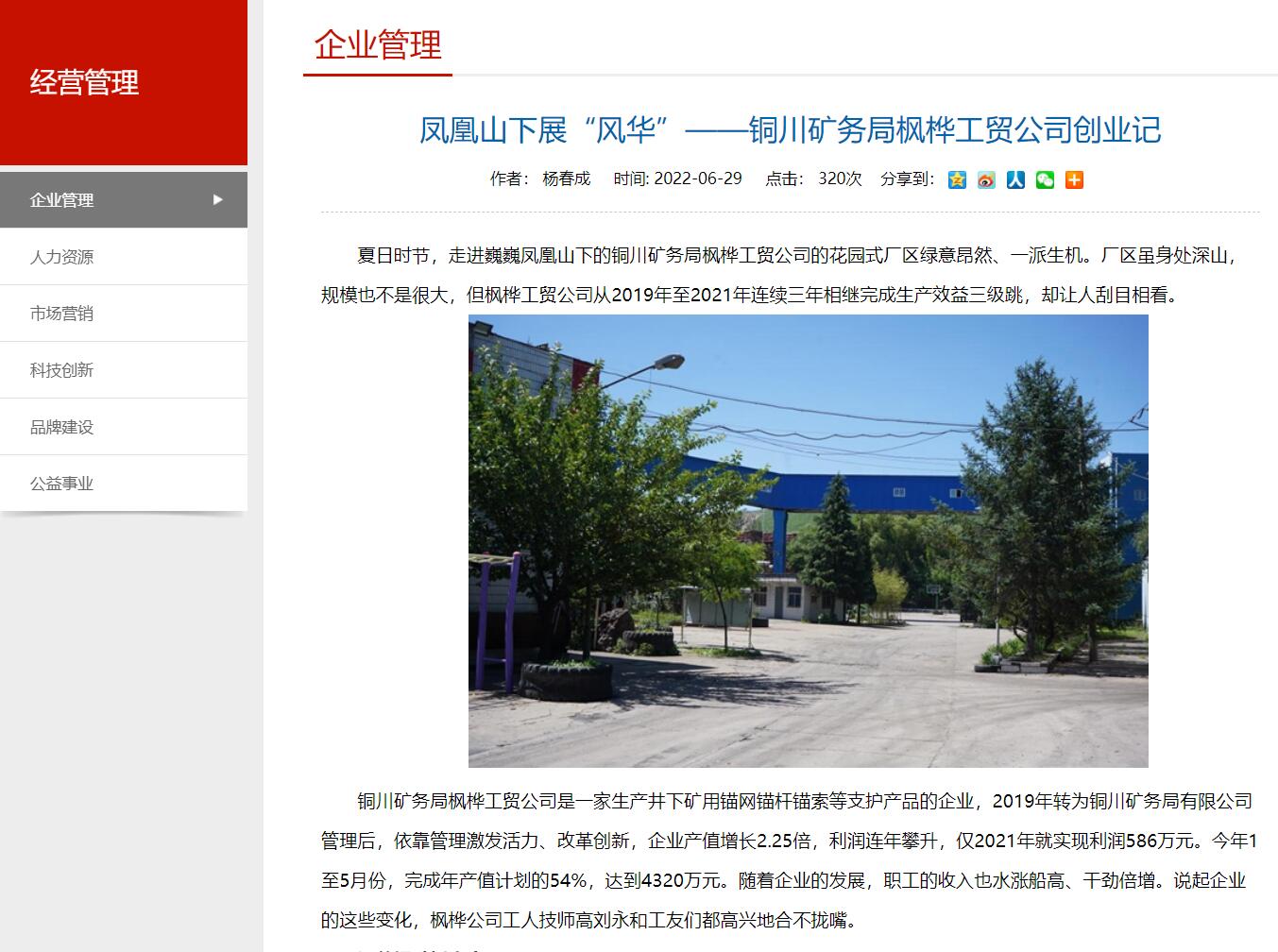 銅川礦務(wù)局楓樺工貿(mào)公司是一家生產(chǎn)井下礦用錨網(wǎng)錨桿錨索等支護產(chǎn)品的企業(yè),2019年轉(zhuǎn)為銅川礦務(wù)局有限公司管理后,依靠管理激發(fā)活力、改革創(chuàng)新,企業(yè)產(chǎn)值增長2.25倍,利潤連年攀升,僅2021年就實現(xiàn)利潤586萬元。今年1至5月份,完成年產(chǎn)值計劃的54%,達到4320萬元。隨著企業(yè)的發(fā)展,職工的收入也水漲船高、干勁倍增。說起企業(yè)的這些變化,楓樺公司工人技師高劉永和工友們都高興地合不攏嘴。