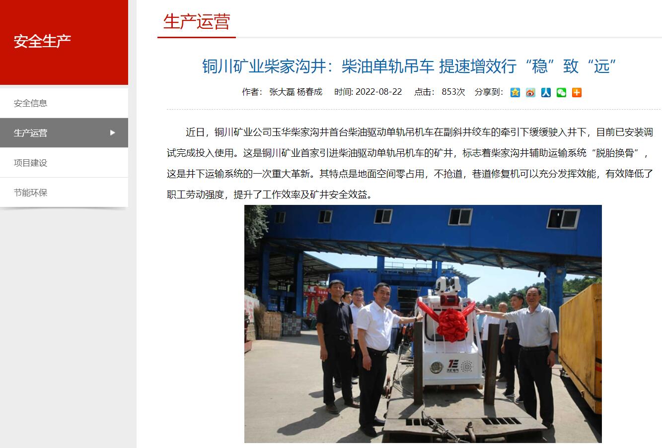 近日,銅川礦業(yè)公司玉華柴家溝井首臺柴油驅(qū)動單軌吊機(jī)車在副斜井絞車的牽引下緩緩駛?cè)刖?,目前已安裝調(diào)試完成投入使用。這是銅川礦業(yè)首家引進(jìn)柴油驅(qū)動單軌吊機(jī)車的礦井,標(biāo)志著柴家溝井輔助運(yùn)輸系統(tǒng)“脫胎換骨”,這是井下運(yùn)輸系統(tǒng)的一次重大革新。其特點(diǎn)是地面空間零占用,不搶道,巷道修復(fù)機(jī)可以充分發(fā)揮效能,有效降低了職工勞動強(qiáng)度,提升了工作效率及礦井安全效益。