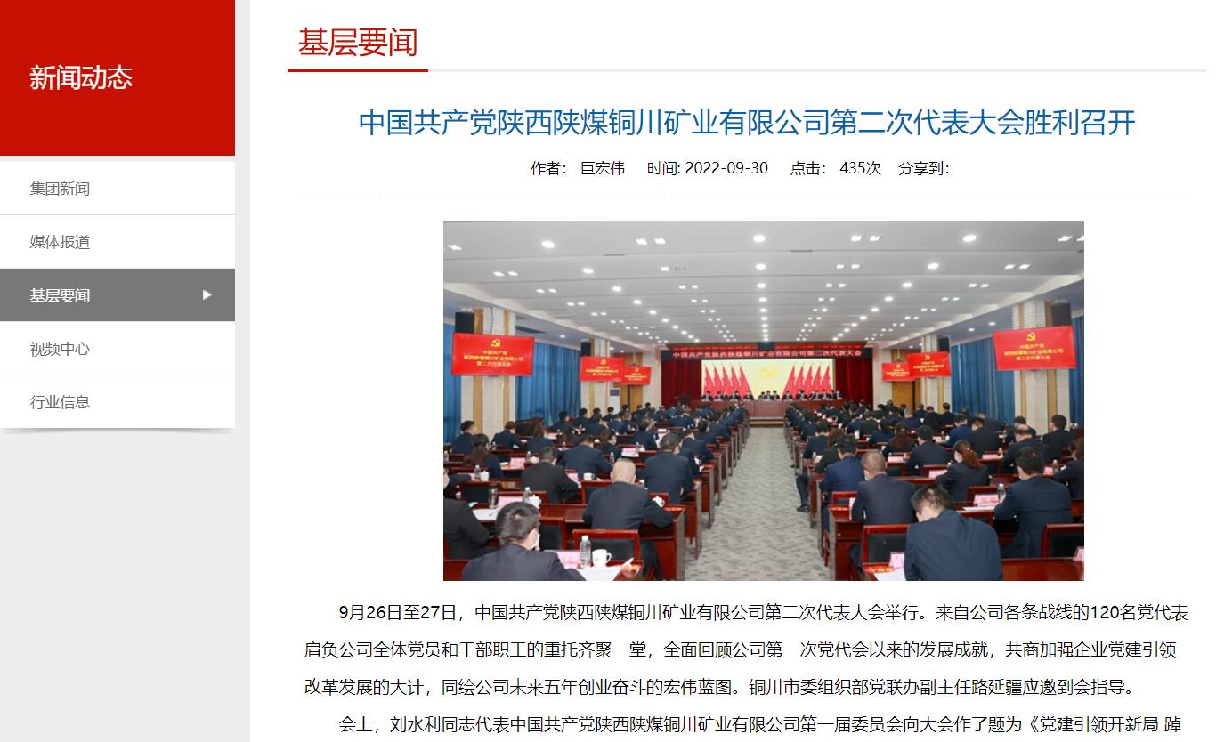 9月26日至27日,中國共產黨陜西陜煤銅川礦業(yè)有限公司第二次代表大會舉行。來自公司各條戰(zhàn)線的120名黨代表肩負公司全體黨員和干部職工的重托齊聚一堂,全面回顧公司第一次黨代會以來的發(fā)展成就,共商加強企業(yè)黨建引領改革發(fā)展的大計,同繪公司未來五年創(chuàng)業(yè)奮斗的宏偉藍圖。銅川市委組織部黨聯(lián)辦副主任路延疆應邀到會指導。