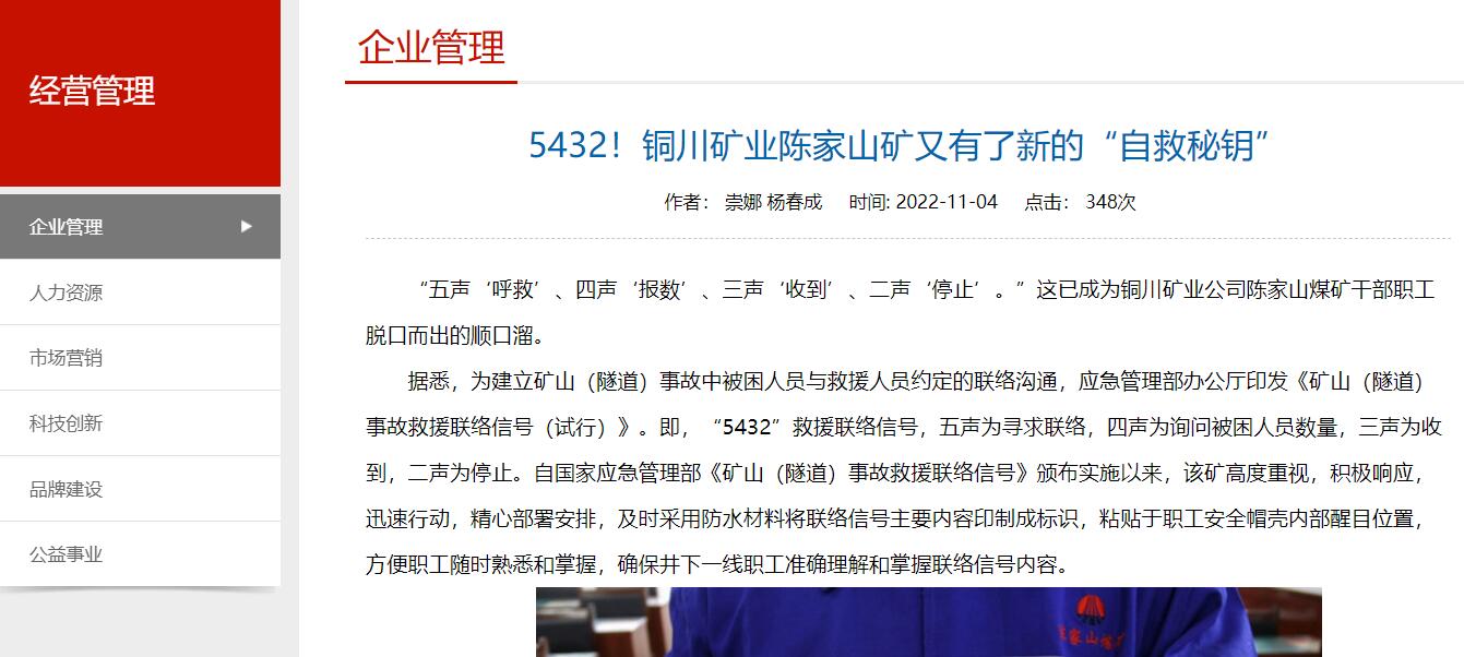 “五聲‘呼救’、四聲‘報數(shù)’、三聲‘收到’、二聲‘停止’。”這已成為銅川礦業(yè)公司陳家山煤礦干部職工脫口而出的順口溜。