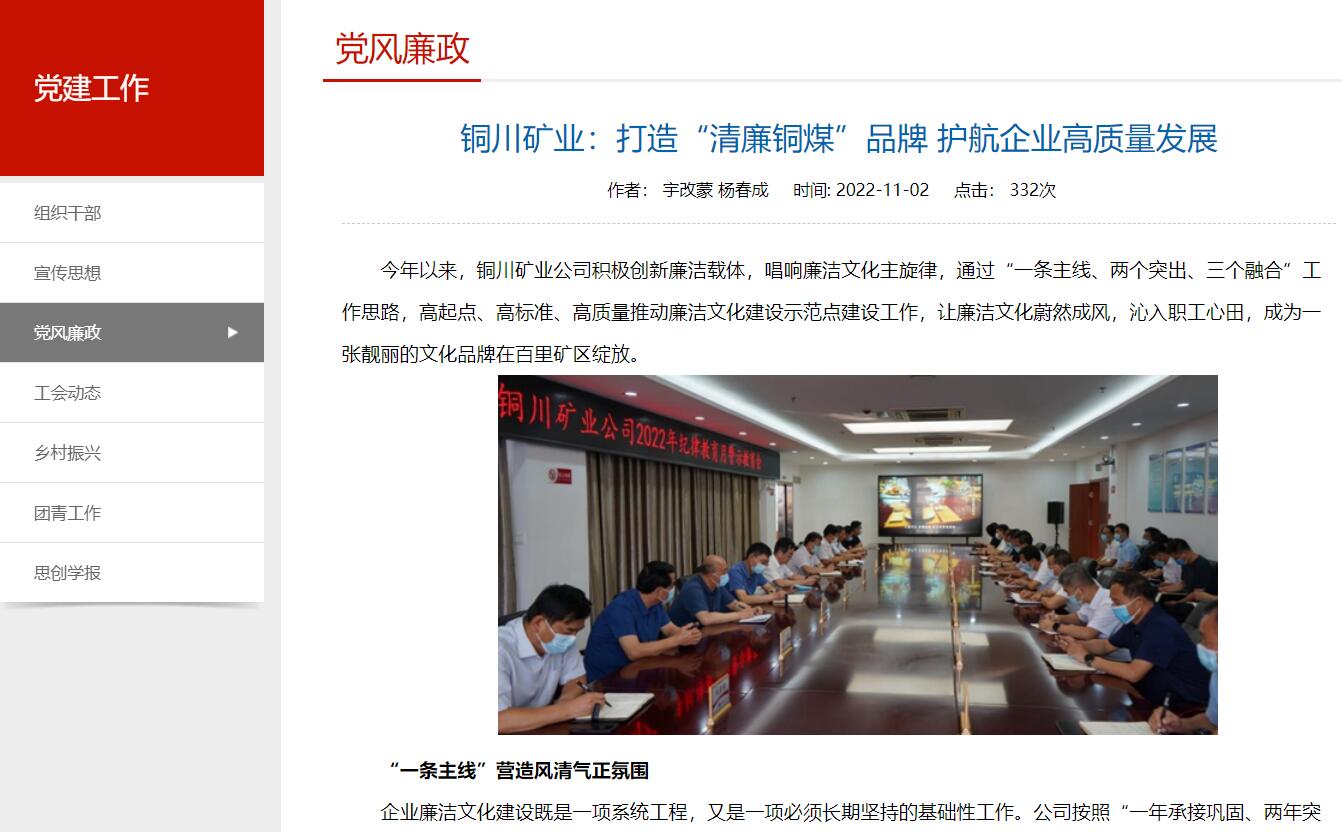 按照強(qiáng)化廉潔文化服務(wù)企業(yè)發(fā)展的原則,公司將廉潔文化融入到管理流程,滲透到黨員干部的日常行為中。將廉潔文化建設(shè)與企業(yè)生產(chǎn)經(jīng)營相結(jié)合,構(gòu)建起“八位一體”監(jiān)督機(jī)制,紀(jì)檢監(jiān)察與安全監(jiān)察密切協(xié)作、雙向進(jìn)入、同步監(jiān)察的“雙監(jiān)察”機(jī)制,建立紀(jì)檢工作融入到內(nèi)控評價中,將監(jiān)察機(jī)制融合到企業(yè)經(jīng)營中去,形成合力,嚴(yán)抓干部作風(fēng)建設(shè)。深挖特色文化資源,打造一批具有銅煤特色的廉潔文化示范點(diǎn),使廉潔文化進(jìn)班子、進(jìn)機(jī)關(guān)、進(jìn)基層(部門)、進(jìn)車間(區(qū)隊(duì))、進(jìn)班組、進(jìn)家庭,切實(shí)增強(qiáng)廉潔文化的厚度與深度。將廉潔文化建設(shè)與職工素質(zhì)培養(yǎng)相結(jié)合,抓落實(shí)之風(fēng)、學(xué)習(xí)創(chuàng)新之風(fēng)、清正廉潔之風(fēng)、實(shí)干擔(dān)當(dāng)之風(fēng)。充分發(fā)揮廉潔文化導(dǎo)向作用、規(guī)范作用、監(jiān)督作用、凝聚作用、預(yù)防作用,教育干部職工廉潔從業(yè)、以“勤快嚴(yán)實(shí)精細(xì)廉”的工作作風(fēng)為導(dǎo)向,推動公司高質(zhì)量發(fā)展上當(dāng)先鋒、做表率、展現(xiàn)新作為。