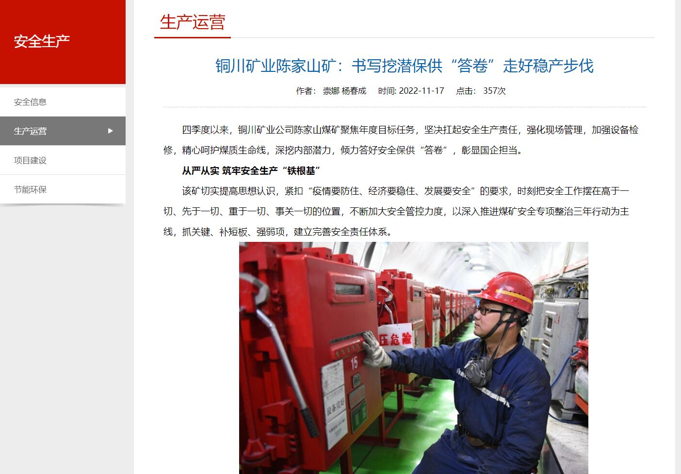 四季度以來(lái),銅川礦業(yè)公司陳家山煤礦聚焦年度目標(biāo)任務(wù),堅(jiān)決扛起安全生產(chǎn)責(zé)任,強(qiáng)化現(xiàn)場(chǎng)管理,加強(qiáng)設(shè)備檢修,精心呵護(hù)煤質(zhì)生命線,深挖內(nèi)部潛力,傾力答好安全保供“答卷”,彰顯國(guó)企擔(dān)當(dāng)。