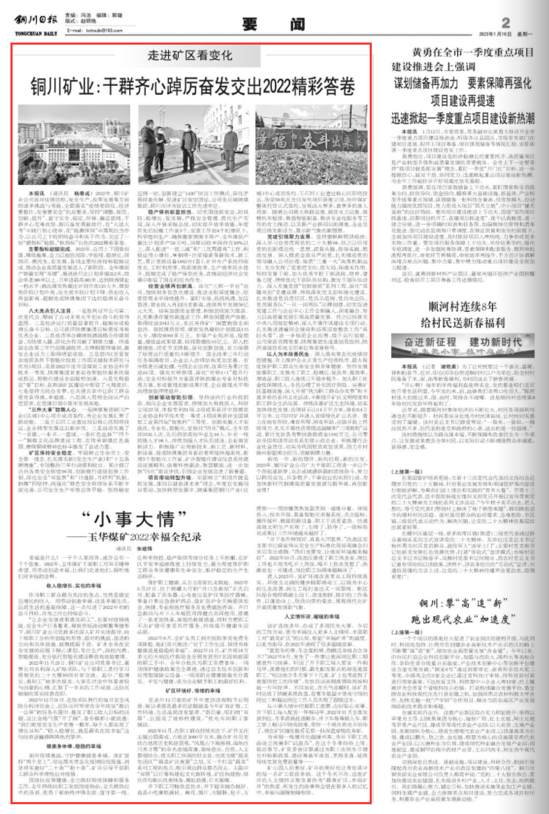 人文情懷濃,暖暖的幸福 該礦連續(xù)多年,辦成了多項民生大事。今后的工作方向,要為幸福注入更多人文情懷,豐富職工對“最美礦區(qū)”的認(rèn)知,彰顯“幸福礦井”的溫度。以此為指導(dǎo),在2022年涌現(xiàn)了很多溫暖故事。