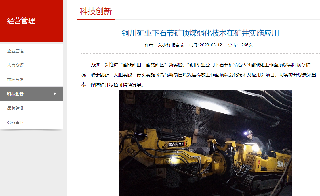 為進(jìn)一步推進(jìn)“智能礦山、智慧礦區(qū)”新實(shí)踐,銅川礦業(yè)公司下石節(jié)礦結(jié)合224智能化工作面頂煤實(shí)際賦存情況,敢于創(chuàng)新,大膽實(shí)踐,帶頭實(shí)施《高瓦斯易自燃煤層綜放工作面頂煤弱化技術(shù)及應(yīng)用》項目,切實(shí)提升煤炭采出率,保障礦井綠色可持續(xù)發(fā)展。