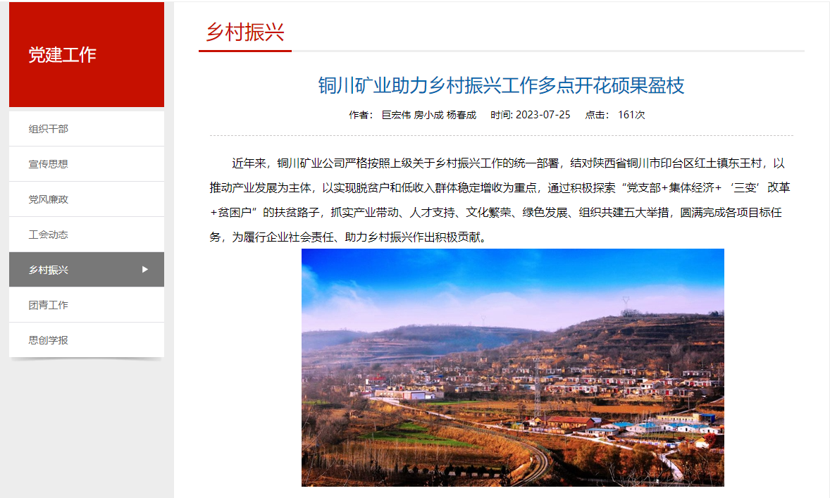 近年來,銅川礦業(yè)公司嚴格按照上級關(guān)于鄉(xiāng)村振興工作的統(tǒng)一部署,結(jié)對陜西省銅川市印臺區(qū)紅土鎮(zhèn)東王村,以推動產(chǎn)業(yè)發(fā)展為主體,以實現(xiàn)脫貧戶和低收入群體穩(wěn)定增收為重點,通過積極探索“黨支部+集體經(jīng)濟+‘三變’改革+貧困戶”的扶貧路子,抓實產(chǎn)業(yè)帶動、人才支持、文化繁榮、綠色發(fā)展、組織共建五大舉措,圓滿完成各項目標任務(wù),為履行企業(yè)社會責任、助力鄉(xiāng)村振興作出積極貢獻。