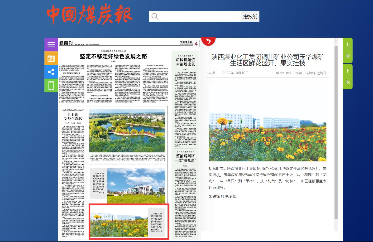 陜西煤業(yè)化工集團銅川礦業(yè)公司玉華煤礦生活區(qū)鮮花盛開、果實掛枝版次:m4 作者:朱建鋒,杜玲玲來源: 2023年10月10日