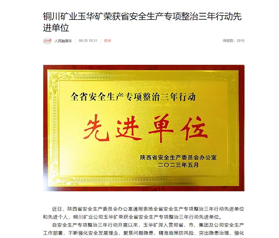 銅川礦業(yè)玉華礦榮獲省安全生產(chǎn)專項(xiàng)整治三年行動(dòng)先進(jìn)單位