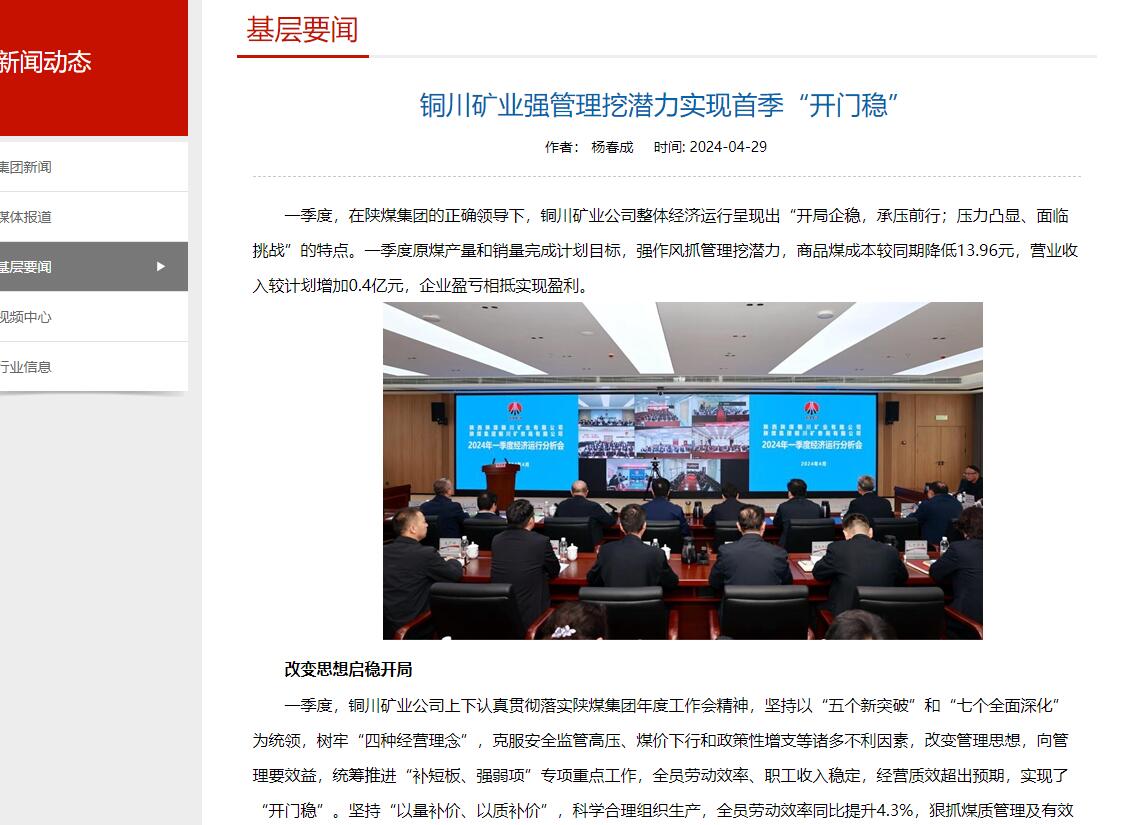 銅川礦業(yè)強(qiáng)管理挖潛力實(shí)現(xiàn)首季“開門穩(wěn)”