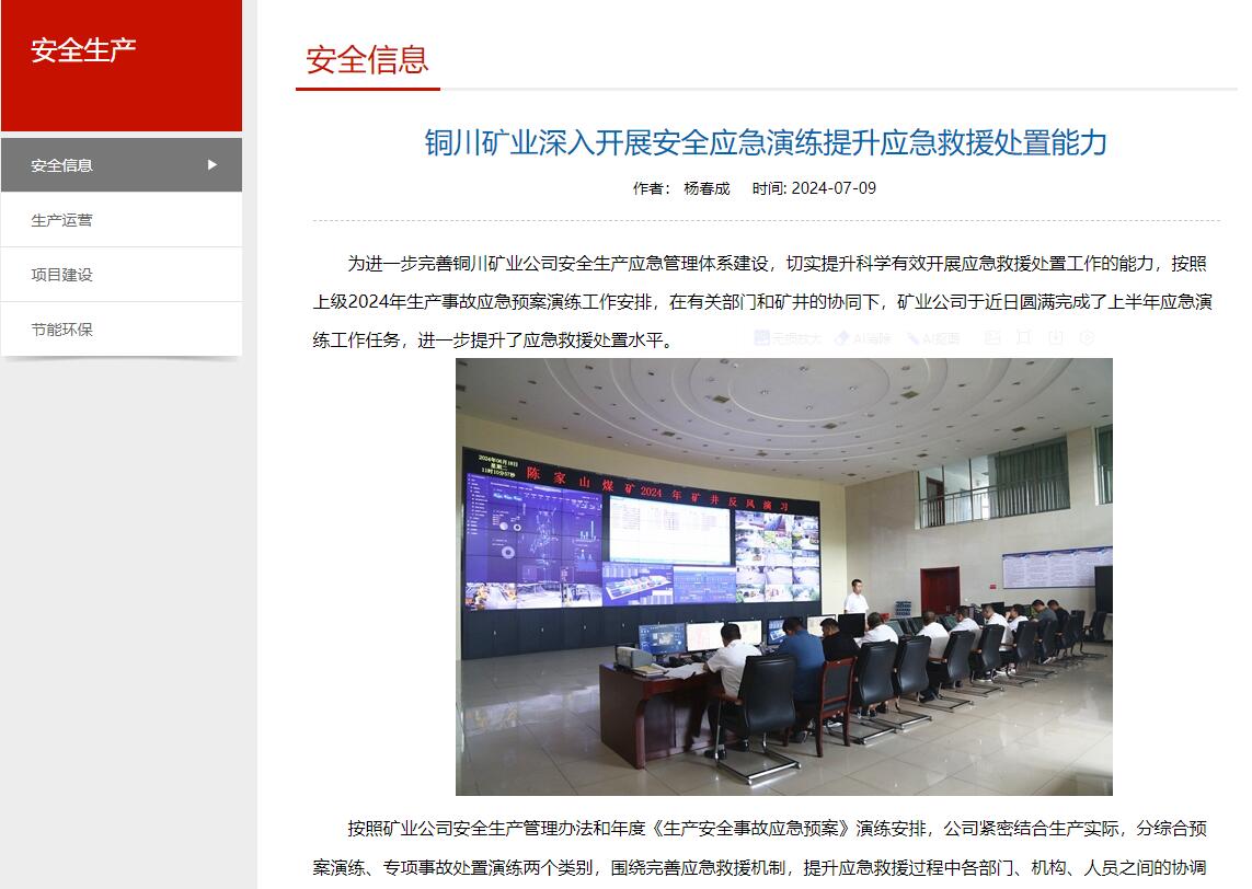 為進一步完善銅川礦業(yè)公司安全生產(chǎn)應(yīng)急管理體系建設(shè),切實提升科學有效開展應(yīng)急救援處置工作的能力,按照上級2024年生產(chǎn)事故應(yīng)急預(yù)案演練工作安排,在有關(guān)部門和礦井的協(xié)同下,礦業(yè)公司于近日圓滿完成了上半年應(yīng)急演練工作任務(wù),進一步提升了應(yīng)急救援處置水平。