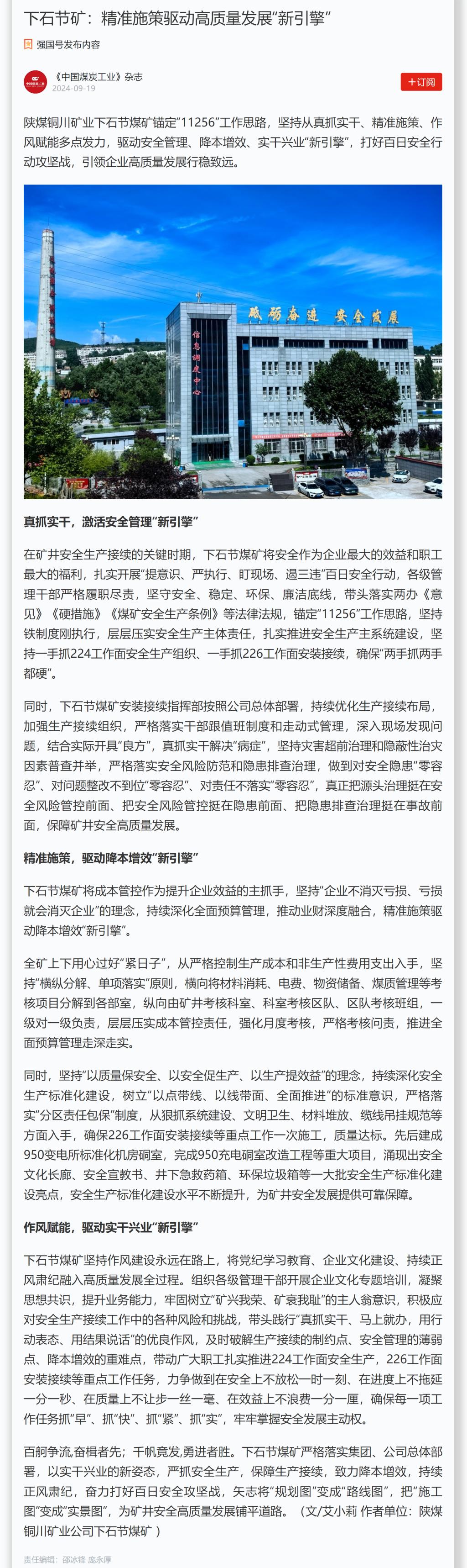 上一條:學(xué)習(xí)強(qiáng)國(guó)| 下石節(jié)煤礦:井下電話亭暢聯(lián)安全心相通 下一條:集團(tuán)網(wǎng)| 銅川礦業(yè):逐綠高歌促綠色發(fā)展