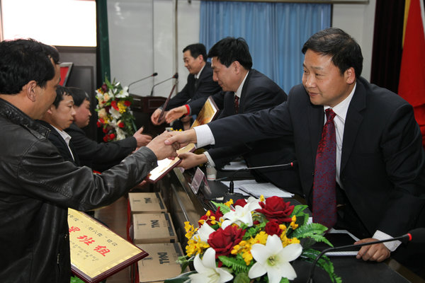 表彰會在《金華山礦礦歌》和震耳欲聾的鞭炮聲中拉開帷幕。會上,該礦礦長寧文衛(wèi)做了題為《弘揚(yáng)先進(jìn)精神、匯聚發(fā)展合力、為建設(shè)平安穩(wěn)定和諧富裕的新礦區(qū)而努力奮斗》的報(bào)告。寧礦長首先代表礦黨政,向受到大會表彰的7個先進(jìn)集體,15個明星班組和56名星級員工,表示熱烈的祝賀!向一年來奮戰(zhàn)在全礦各條戰(zhàn)線,為該礦安全、穩(wěn)定發(fā)展付出智慧和汗水的廣大干部職工致以崇高的敬意和衷心的感謝!先進(jìn)集體、明星班組和星級員工,兢兢業(yè)業(yè),勇于進(jìn)取,全礦雙文明建設(shè)取得新碩果。希望先進(jìn)集體、明星班組和星級員工再接再厲,為該礦改革發(fā)展再立新功。一是反驕破滿,從頭做起,保證安全“零”目標(biāo)實(shí)現(xiàn)。二是合理安排,精心組織,認(rèn)真抓好原煤生產(chǎn)。三是規(guī)范管理,堵塞漏洞,確保經(jīng)營工作再上新臺階。四是明確目標(biāo),落實(shí)責(zé)任,推動企業(yè)文化建設(shè)出實(shí)效。五是統(tǒng)籌安排,抓緊動手,全面抓好地面基建工程。