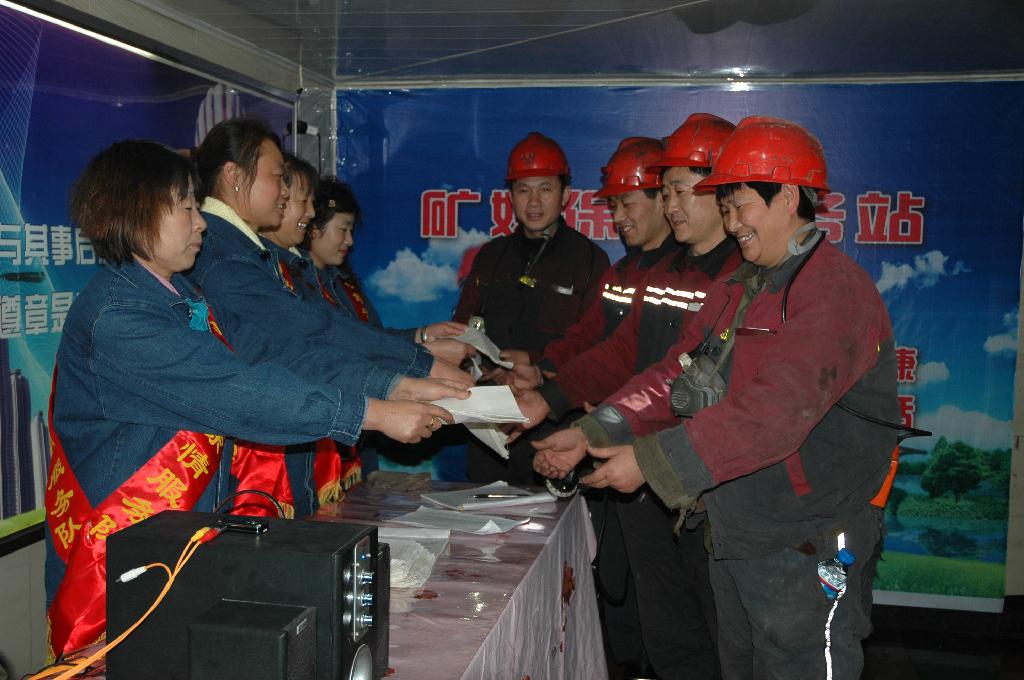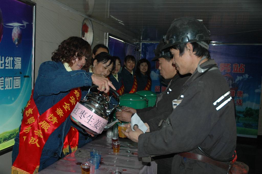 目前距實(shí)現(xiàn)今年安全“零”目標(biāo)不到兩個(gè)月時(shí)間了,為了確保這一目標(biāo)的順利實(shí)現(xiàn),徐家溝煤礦公司“礦嫂服務(wù)隊(duì)”在原來工作的基礎(chǔ)上,按照把活動(dòng)再新一點(diǎn),活動(dòng)內(nèi)容再豐富一點(diǎn),活動(dòng)區(qū)域再寬一點(diǎn),活動(dòng)效果再好一點(diǎn)的思路,不斷創(chuàng)新開展特色活動(dòng),為安全生產(chǎn)再作新的貢獻(xiàn)。近日,“礦嫂服務(wù)隊(duì)”人員在井口服務(wù)站開展了送健康茶水和送抹布活動(dòng)。她們分成三班,在員工上下班時(shí)間,為職工送去由紅棗、生姜、枸杞子、山楂等熬成的茶水。這是她們?cè)谠儐栣t(yī)生的情況下開始做的,熬成的茶水不僅解渴,還有健胃、祛濕的作用,被員工成為“健康茶水”。她們?cè)诿總€(gè)班上下班時(shí)間之前,提前熬好,保證員工每個(gè)班上下班時(shí)間都能喝到,凌晨4點(diǎn)多,她們就起來開始熬水,夜里11點(diǎn)至凌晨1點(diǎn)她們?nèi)詧?jiān)持在井口服務(wù)站為員工送健康茶水,一杯杯健康茶水,送去了礦嫂對(duì)一線員工身體的關(guān)愛,一句句叮嚀,體現(xiàn)著礦嫂對(duì)礦工兄弟安全的關(guān)心。