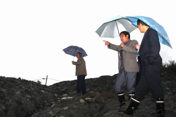 次日一大早,該礦礦長李文輝立即命宣傳部利用廣播向全礦職工家屬發(fā)出緊急通知,要求居住在滑坡地帶的住戶,一定要注意自身安全,精心觀察,一有變化,及時匯報,以便第一時間處理險情。同時命令由各科室人員組成的“三防”突擊隊30余人立即集合,并分成四個小組立即對礦區(qū)各工業(yè)場所和生活區(qū)進行拉網(wǎng)式險情排查,“三防”指揮部政委、黨委副書記李建榮則帶領(lǐng)一組人立即前往險情較重的選運區(qū)。 選運區(qū)選煤樓陜北村區(qū)域下,是該礦鐵路運輸?shù)难屎硪?,?jù)選運區(qū)隊長匯報,該處已有垮塌跡象,嚴(yán)重威脅鐵路運輸。在去往選運區(qū)災(zāi)情現(xiàn)場的路上,因為大雨泥濘不堪,又是上坡路,卻并沒有阻止一行人前進的腳步,走到險情發(fā)生地,李建榮一邊詢問選運區(qū)長災(zāi)害發(fā)生情況,一邊指示隨行來的相關(guān)科室人員立即拿出搶修方案,待搶修工作落實后,一行人又對另一區(qū)域進行排查,當(dāng)走到去往醫(yī)院的“溫馨路”段,發(fā)現(xiàn)護坡垮塌處有住戶時,立即指示隨行人員,妥善安置住戶,待險情排除后,再讓住戶搬回來。此時另外幾組“三防”隊員將排查情況也一一上報到三防指揮部。為了深入了解險情,三防隊員多次深入住戶家現(xiàn)場了解情況,并認(rèn)真作好記錄,以便及時解決。