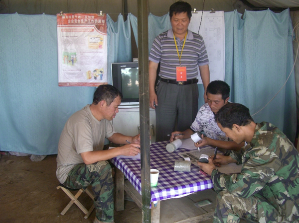 7月20日,天氣炎熱,皎陽似火,地質(zhì)勘測公司2011年技術(shù)比武大賽在野外4號生產(chǎn)鉆機現(xiàn)場舉行,來自各鉆機選拔的技術(shù)能手站成兩排摩拳擦掌、斗志昂揚,隨著技術(shù)比武總指揮地勘公司總工寇青安同志的一聲令下,各參賽組隊員爭先恐后、緊張有序地投入了比賽。生產(chǎn)鉆機類3個項目包括實踐操作(上下一趟鉆);巖心辨認;理論考試(安全專業(yè)知識問答題)。