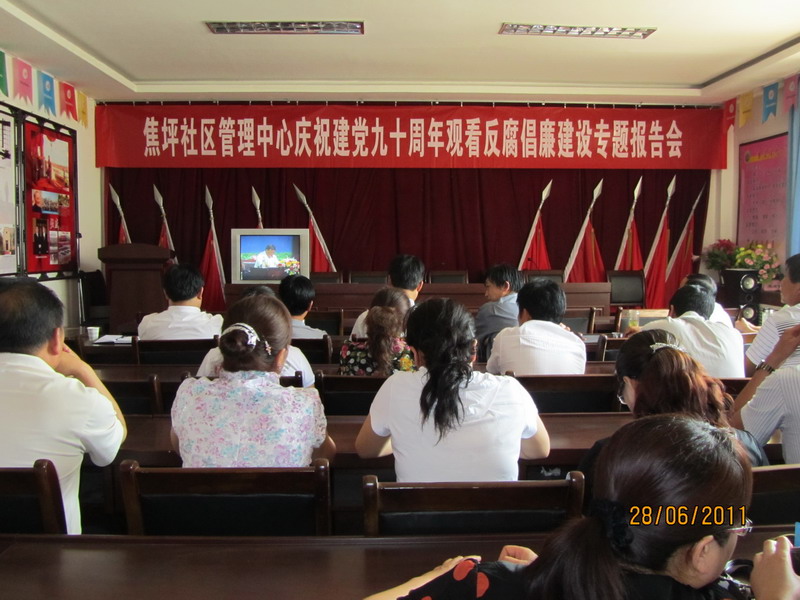6月28日下午,社管中心副科級(jí)以上領(lǐng)導(dǎo)干部和機(jī)關(guān)全體工作人員50余人,在社管中心黨校觀看了省紀(jì)委副書(shū)記紀(jì)相忠同志在銅川礦業(yè)公司(局)建黨90周年反腐倡廉建設(shè)專(zhuān)題報(bào)告會(huì)光碟。