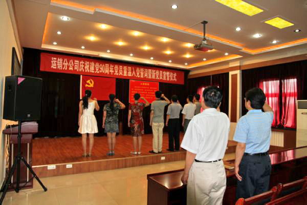 為了迎接中國共產(chǎn)黨成立90周年的到來,運銷分公司黨總支組織全體黨員開展了豐富的慶?;顒印R皇桥e行了黨員重溫入黨誓詞暨新黨員宣誓儀式,二是舉辦了慶祝建黨90周年圖片展,內(nèi)容豐富,形式多樣。