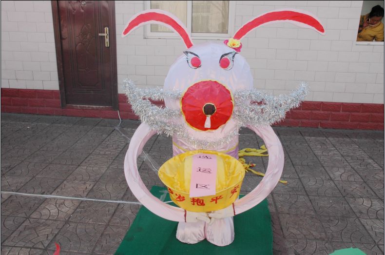 元宵佳節(jié),徐家溝礦公司男女老少都沉浸在歡樂祥和的節(jié)日氣氛中。公司披上了節(jié)日的盛裝,礦部?jī)?nèi)彩旗飄揚(yáng),單身樓前懸掛了形態(tài)各異的燈籠。有宮燈、韓式燈、紗燈,還有兔型燈,讓人目不暇接。綜采隊(duì)制作的采煤機(jī)燈,體型龐大,形態(tài)逼真,上繪有安全生產(chǎn)的圖畫,布滿了小彩燈,并不停地播放喜慶的樂曲聲。選運(yùn)區(qū)制作的抱元寶的玉兔燈,更是活靈活現(xiàn),煞是可愛,吸引了前來觀看的員工家屬的目光。
