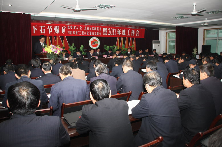 1月5日,銅川礦業(yè)公司下石節(jié)煤礦隆重召開黨委(擴大)會、九屆五次職代會、2010年度“三型六化”建設表彰會暨2011年度工作會。該礦黨政領導與來自全礦各條戰(zhàn)線上的干部職工代表參加了此次盛會。會議總結了2010年及“十一五”工作,表彰了全礦各條戰(zhàn)線上涌現出的先進集體和先進個人,安排部署了2011年的工作任務,為科學指導全年工作,實現“十二五”良好開局奠定了堅實基礎。