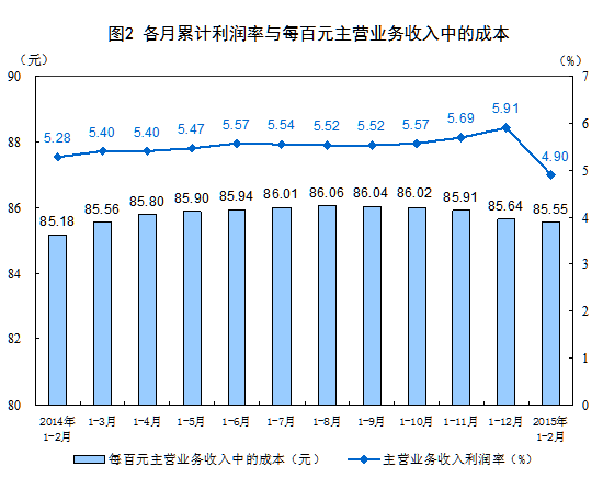 表1 2015年1-2月份規(guī)模以上工業(yè)企業(yè)主要財務(wù)指標(biāo)