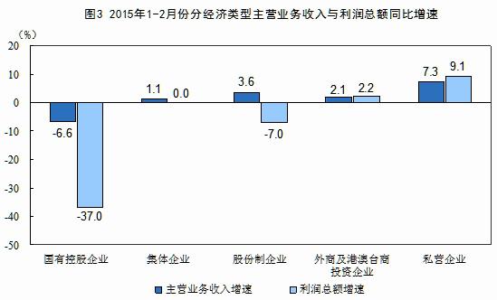 1-2月份,在規(guī)模以上工業(yè)企業(yè)中,國有控股企業(yè)實現(xiàn)利潤總額1342.4億元,同比下降37%;集體企業(yè)實現(xiàn)利潤總額66.8億元,同比持平;股份制企業(yè)實現(xiàn)利潤總額4739.5億元,下降7%;外商及港澳臺商投資企業(yè)實現(xiàn)利潤總額1842.7億元,增長2.2%;私營企業(yè)實現(xiàn)利潤總額2895.9億元,增長9.1%。