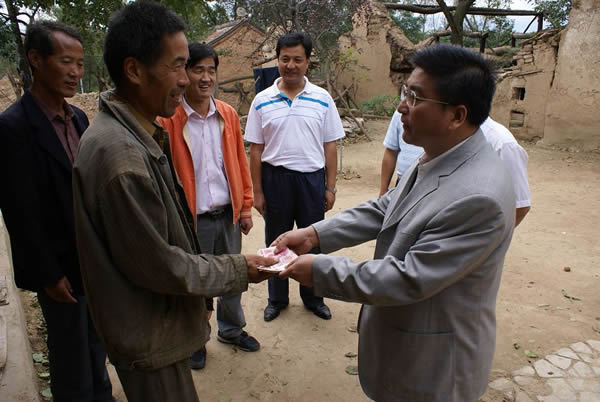 “這里秋意暖融融…” “在中秋節(jié)到來之際,我代表金華山礦黨政來看您們來了,祝您們中秋節(jié)快樂……您們的困境我們會想法解決的,這是給您孩子的助學(xué)金,要想方設(shè)法讓孩子上學(xué)…….“你看,我們農(nóng)民老實(shí),連一句感謝的話都不會說。我代表袁家山村村民感謝金華山礦領(lǐng)導(dǎo)、感謝武書記?!痹疑酱妩h支部書記孫拴成這么說。這是金華山礦黨委書記武永發(fā),在扶貧幫困現(xiàn)場和村袁家山黨支部書記孫拴成的對話。