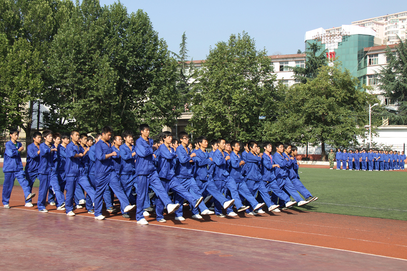 上午9時(shí)整,隨著令人振奮的解放軍進(jìn)行曲軍樂(lè),旗手高舉“銅川工業(yè)技術(shù)學(xué)院”校旗在兩名新生的護(hù)衛(wèi)下正步進(jìn)入會(huì)場(chǎng),全場(chǎng)700多名參訓(xùn)新生列為12個(gè)方隊(duì),在教官的帶領(lǐng)下,列隊(duì)整裝肅立,院黨委書(shū)記楊智博、副院長(zhǎng)馮燕勛 檢閱了全體參訓(xùn)新生方隊(duì);隨后,12個(gè)新生方隊(duì)和著激昂的軍樂(lè)、邁著整齊鏗鏘的步伐依次通過(guò)主席臺(tái)前,接受學(xué)院領(lǐng)導(dǎo)的檢閱。從9時(shí)15分開(kāi)始,12個(gè)方隊(duì)以整齊劃一的動(dòng)作分別進(jìn)行了包括立正稍息、軍容軍姿、隊(duì)列轉(zhuǎn)向的隊(duì)列表演,以一致的步伐進(jìn)行了隊(duì)列行進(jìn)間的齊步走、跑步走、正步走的隊(duì)列表演,最引人注目的是600名新生的軍體拳表演,場(chǎng)面宏大氣勢(shì)磅礴、口號(hào)響亮動(dòng)作到位、整體協(xié)調(diào)令人震撼。