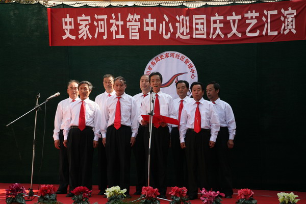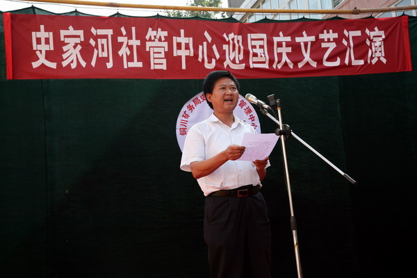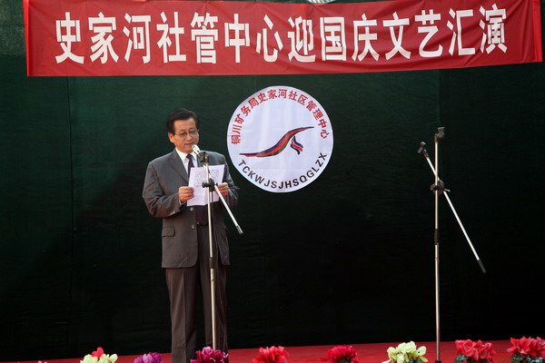 演出在歡慶的鑼鼓聲中拉開了序幕。史家河社區(qū)管理中心黨總支副書記楊樹新致歡迎詞。局副總劉國強做了重要講話。史家河社區(qū)近年來不斷創(chuàng)新管理,推行人性化、親情化管理,重視職工文化生活,先后成立了秧歌隊、鑼鼓隊、門球隊等群眾性文體組織,為“百人鑼鼓隊”和“舞龍隊”購買了鑼鼓樂器,統(tǒng)一了服裝,建立了訓練場地,使廣大職工家屬受到精神熏陶,在社區(qū)形成了一道靚麗的風景線。希望史家河社區(qū)繼續(xù)發(fā)揚成績,再接再厲,按照局黨政的部署,強化社區(qū)職能,打造文化社區(qū)。并預祝演出圓滿成功。