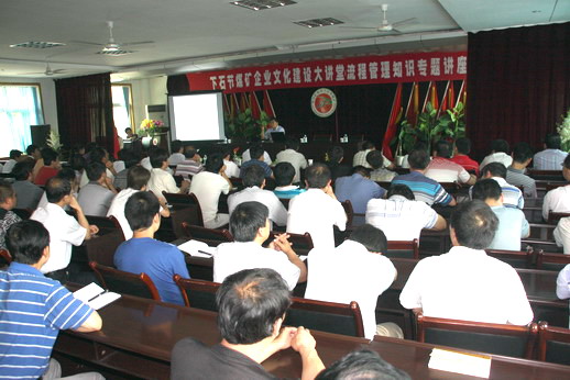 下石節(jié)礦為進(jìn)一步加快礦區(qū)推廣流程管理進(jìn)程,7月22日,該礦特邀王石凹礦黨委副書記、紀(jì)委書記田戰(zhàn)強(qiáng)同志就王石凹煤礦推行流程管理的寶貴經(jīng)驗(yàn)為全礦125名管理人員作專題講座,虛心向推廣流程管理的示范單位“取經(jīng)”。