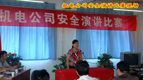 今年安全生產(chǎn)活動(dòng)月,機(jī)電公司組織了豐富多彩的安全活動(dòng),本次安全演講比賽是機(jī)電公司安全生產(chǎn)月安排的一項(xiàng)活動(dòng),得到了公司黨政領(lǐng)導(dǎo)的大力支持,公司司軍社經(jīng)理親臨現(xiàn)場(chǎng)指導(dǎo)工作,使得活動(dòng)開(kāi)展非常順利,在演講比賽開(kāi)始前,做了精彩的致辭,