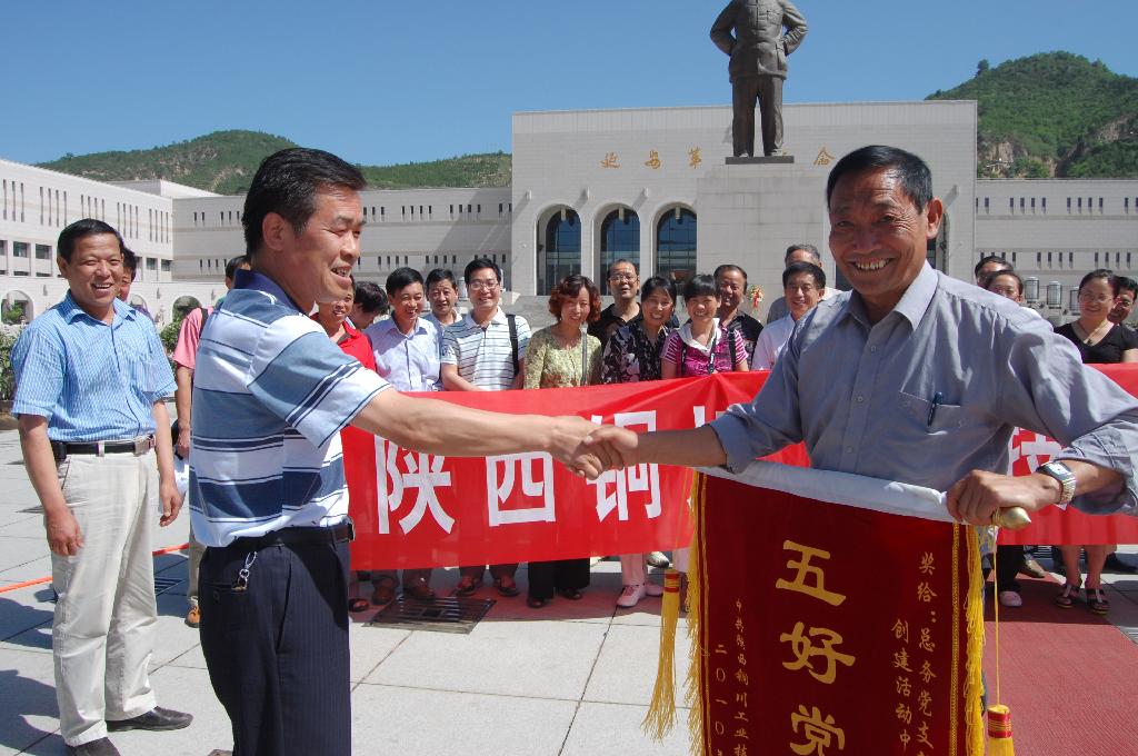 與會(huì)的全體同志還參觀了在棗園的毛主席、劉少奇、周恩來(lái)、朱德等老一輩革命家故居,在楊家?guī)X參觀了“七大”會(huì)址、中共中央辦公廳舊址和毛主席做出“一切反動(dòng)派都是紙老虎”著名論斷的與美國(guó)記者安娜·路易斯·斯特朗談話的石桌石凳;參觀了清涼山上的新華廣播電臺(tái)舊址,在革命圣地象征的寶塔山上的中國(guó)共產(chǎn)黨黨旗前重溫了入黨誓詞,使延安之行的接受傳統(tǒng)教育活動(dòng)達(dá)到高潮。