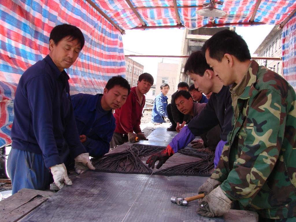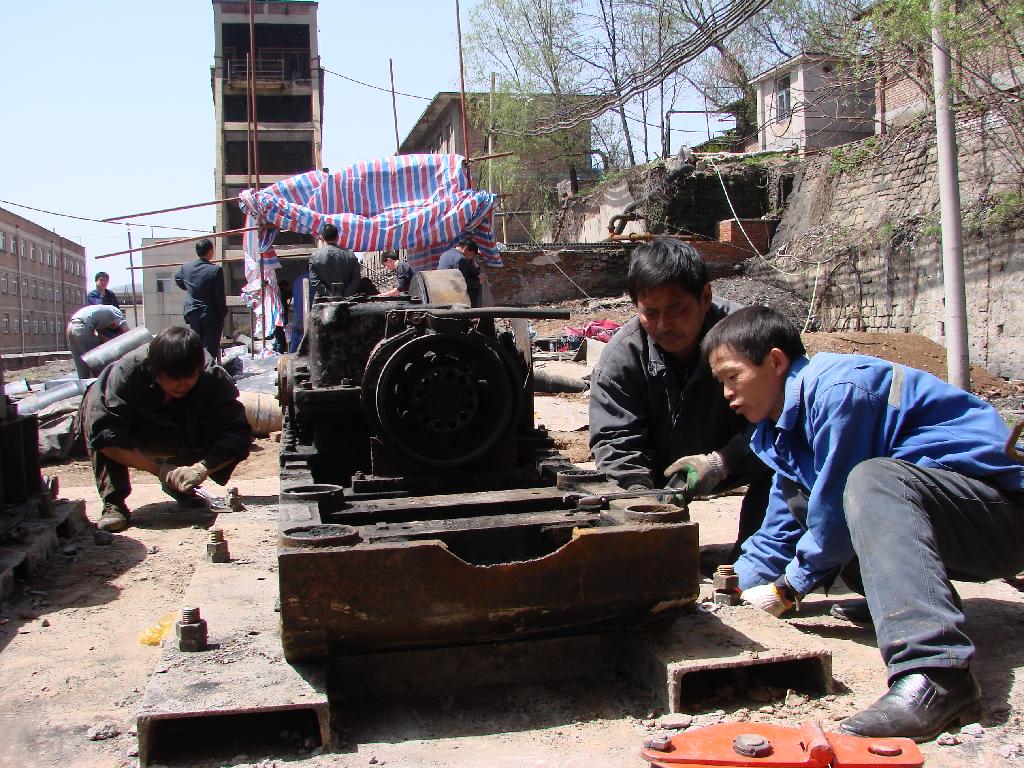 為保質保量完成任務,該礦成立工程領導小組,抽調骨干人員深入現(xiàn)場,分析研究,制定施工組織方案;細化工程分工,明確工程進度,嚴格工序要求,加大現(xiàn)場管理。施工現(xiàn)場,各業(yè)務科室協(xié)同作戰(zhàn),作業(yè)現(xiàn)場井然有序,扒接頭、打毛、拋光、擰螺緊栓每一個環(huán)節(jié)都有技術員跟班指導,做到一絲不茍,確保膠帶接頭嚴絲合縫。主井膠帶通行的中心線兩側,4臺牽引絞車固定完畢,其余絞車正在加緊固定。目前,各項前期工作正在井然有序的進行,為確保高質量、高標準完成任務奠定基礎。 (圖分別為工人固定牽引絞車;為膠帶進行續(xù)接現(xiàn)場。)
