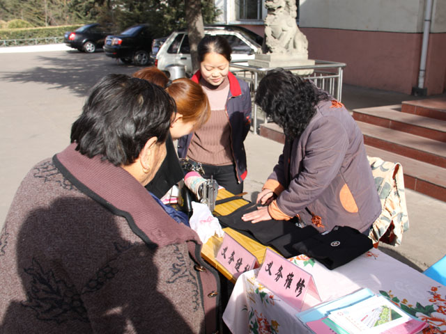 此次活動(dòng)是該公司團(tuán)委繼開(kāi)辦學(xué)雷鋒茶水站后,本著為員工群眾辦實(shí)事、辦好事的想法,結(jié)合公司實(shí)際,組織開(kāi)展的一項(xiàng)便民活動(dòng)。活動(dòng)的內(nèi)容主要有義診、義務(wù)縫補(bǔ)衣物、安全法規(guī)宣傳、社保政策宣傳、義務(wù)維修等,走進(jìn)活動(dòng)現(xiàn)場(chǎng),就看到一些老年人在量血壓、員工在咨詢(xún)有關(guān)社保政策、志愿者在發(fā)放安全宣傳單,一片熱鬧景象。一位老大爺高興地說(shuō):“希望以后能辦一些這種便民活動(dòng),讓雷鋒精神永駐礦山?!?圖1為志愿者為老年人測(cè)量血壓;圖2為志愿者為員工縫補(bǔ)衣物。