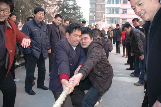 2月20日公司工會組織開展了2010年職工拔河比賽。 賽前,公司工會對參賽人員、活動場地、比賽規(guī)則和獎項設(shè)置等做了認真細致的安排,將公司10個車間工會組成參賽隊伍,進行抽簽分組,每隊由10名隊員組成。 上午9時30分,各參賽隊員列隊進入比賽場地,隨著裁判哨聲響起,兩支蓄勢待發(fā)的隊伍都憋足干勁開始了力量與技巧的博弈,活動現(xiàn)場的氣氛頓時達到高潮,拉拉隊的加油聲震耳欲聾,“加油!加油!”此起彼伏。公司領(lǐng)導(dǎo)也紛紛加入到拉拉隊中,一邊給隊員加油,一邊進行技巧指導(dǎo)。經(jīng)過幾輪角逐和淘汰,最終由運輸科車間比賽隊伍獲得拔河比賽冠軍。