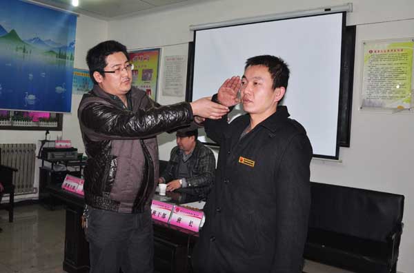 評(píng)委為掘進(jìn)四隊(duì)支護(hù)工校正動(dòng)作