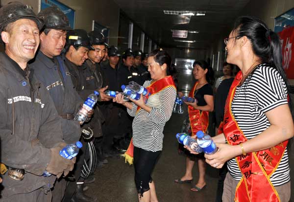 27日下午3點(diǎn),東坡礦井口增設(shè)的“清涼臺”前,20余名女工家屬粉面含笑,倒上一杯杯茶水,送上一句句叮嚀,熱情地為升、下井職工送清涼。端上茶水,礦哥樂開了花,打趣地哼唱:“美女井口送清涼,咱下井的人啊——真高興!”掘四隊(duì)隊(duì)長李保舉高興地說:“這不僅是安全茶,還是情誼茶和清涼茶,是咱安全生產(chǎn)的動力茶!”礦哥們一致附和:就是!就是動力茶!女工協(xié)管員時(shí)婷婷感嘆:“送杯茶,是舉手之勞。若能讓礦工們感受到一絲關(guān)懷、一份關(guān)切、一片關(guān)心,對我就是一件美好的事!”東坡礦推出“粉紅礦井”的浪漫之約,注重文化引領(lǐng),調(diào)劑礦區(qū)生活,使職工家屬感受到了平常日子的美好與浪漫,也讓他們進(jìn)一步融入到了“東坡文化”中,體味本礦文化名片“粉紅礦井”的內(nèi)涵與魅力。大家紛紛感嘆:頂著“粉紅礦井”的名片,我們應(yīng)該有高素質(zhì)才能匹配!