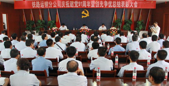 6月28日上午,鐵運分公司慶祝建黨91周年暨創(chuàng)先爭優(yōu)總結表彰大會,在該分公司二樓會議室隆重召開。該分公司經理孫建軍,黨委副書記、紀委書記、工會主席高愛林,安監(jiān)處長陸新銅出席了會議,分公司各中層干部、受表彰的先進集體、先進個人及新入黨同志共110余人參加會議。會議由黨委副書記、紀委書記、工會主席高愛林主持。大會在嘹亮的《國歌》聲中正式開始。