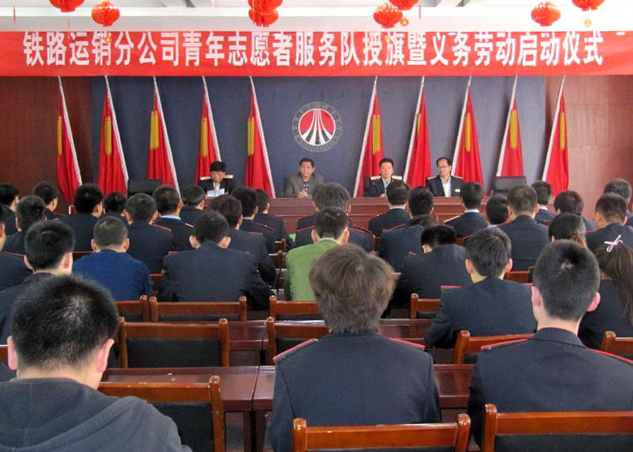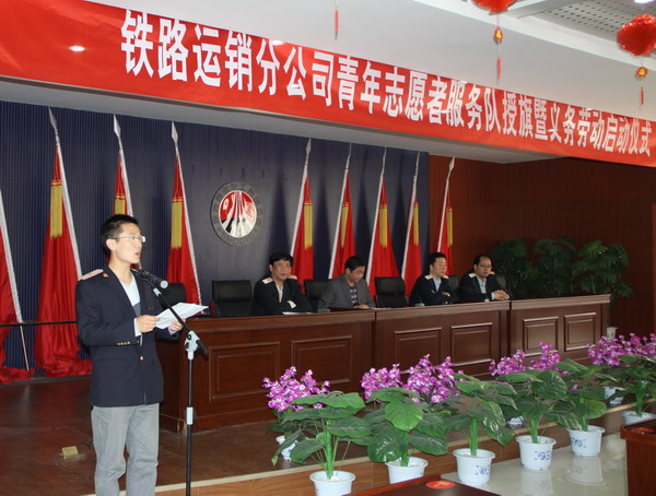 4月28日,鐵路運銷分公司團員青年以舉行青年志愿者服務隊授旗暨義務勞動啟動儀式和開展“雷鋒駐心中,志愿我先行”主題實踐活動的特殊方式,喜迎“五四”運動93周年和中國共產(chǎn)主義青年團成立90周年。